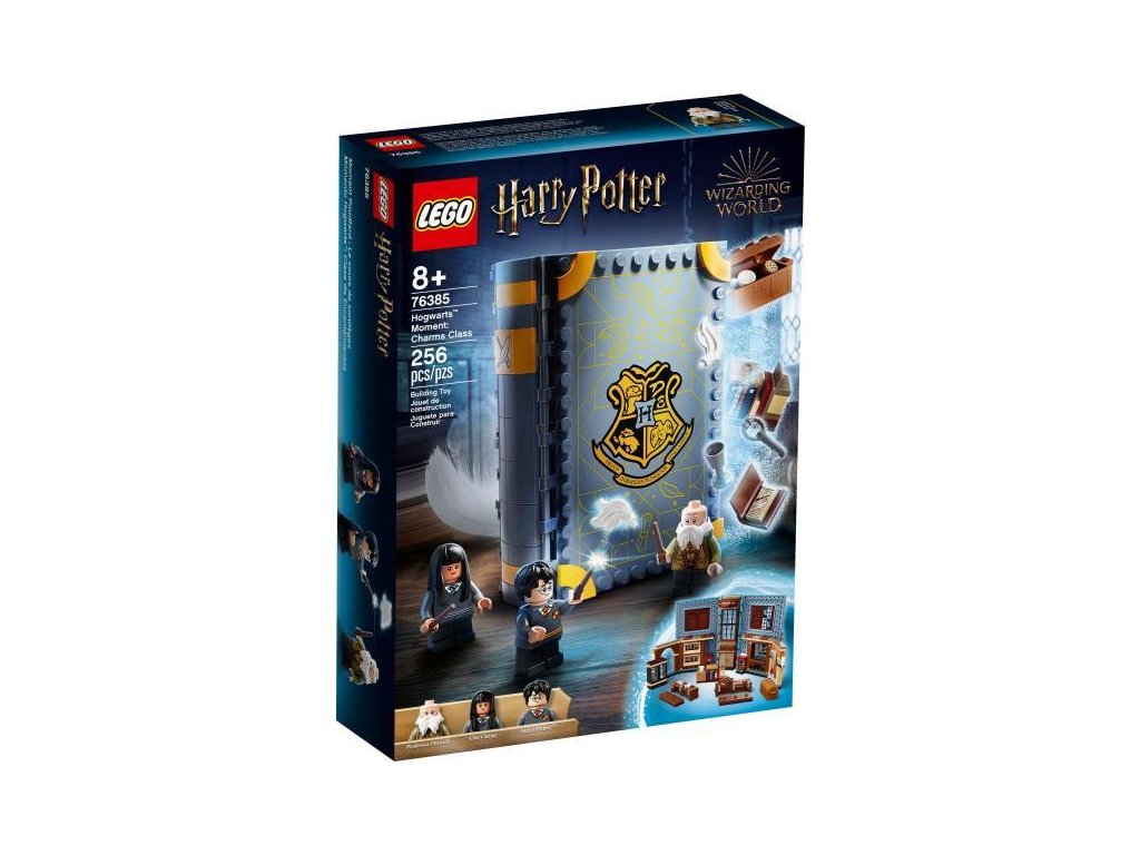 A LEGO® Harry Potter Roxfort™ pillanatai: Bűbájtan óra (76385) egy roxforti tanterem, ami egy kockákból épült, könyves játékkészlet borítója alatt rejlik. Ha a gyermekek felemelik a borítót, Flitwick professzor bűbájtan óráján találják magukat.