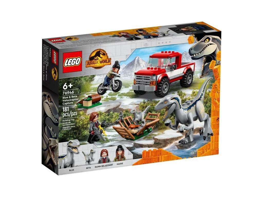 A dinoszauruszokért és vagány járművekért rajongó gyerekek imádni fogják ezt a LEGO® Jurassic World Kék és Béta velociraptorok elfogása (76946) készletet. A Jurassic World Világuralom című film ihlette izgalmas jelenet egy megépíthető teherautót, motort és dinoszauruszketrecet tartalmaz csapdafunkcióval és csirkecombbal dinoszauruszcsalinak.